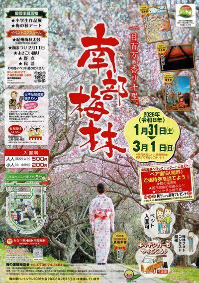 早春を感じる梅の花!みなべ町の観光梅林「南部梅林」が1月31日に開園しました。